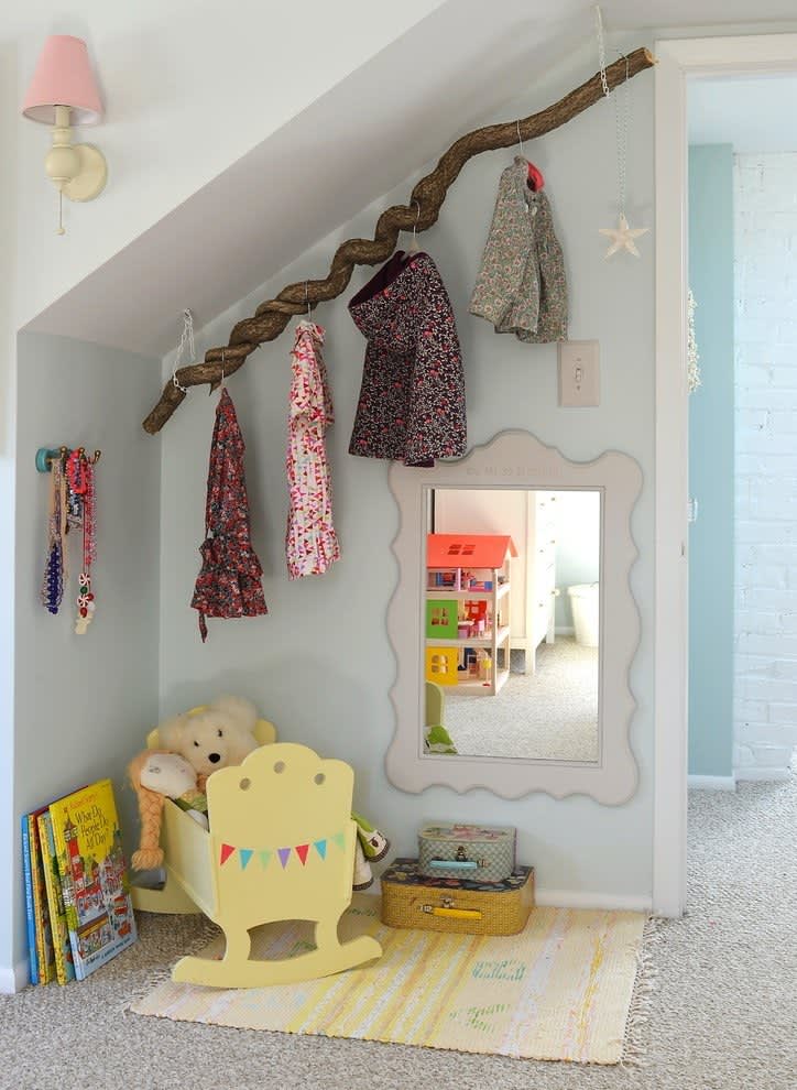 One of my favorite rooms in any house is the one that's been carved out what was once an empty attic. Transverse wood cladding or wallpaper with a transverse design/pattern can make a room seem wider. Ideas decorating sloped ceiling mabey she.